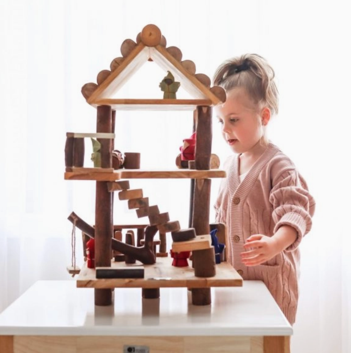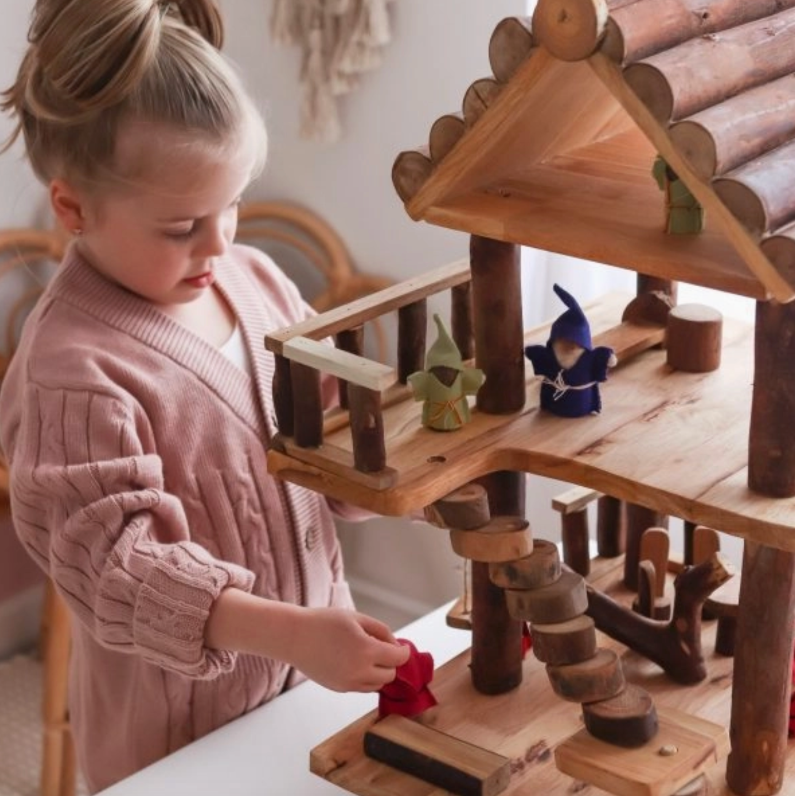 Imagination plays a crucial role in children’s early learning. Imagination opens the door for children to explore the world around them. This cottage dollhouse is among our series of imaginative play toys. Boys and girls love fairy play. This play house set is not only a great addition for role play, storytelling, but also provides a tactile, creative playtime experience.